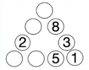 42. 將一張正方形色紙,依下面的方式摺疊,並剪掉1個小角後,打開這張色紙會是哪一個圖形?