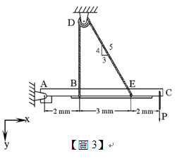 45. 4.如【圖3】所示,AC梁由A銷及繞過D滑輪之繩索支撐,外力P大小為60N,繩索張力為何?