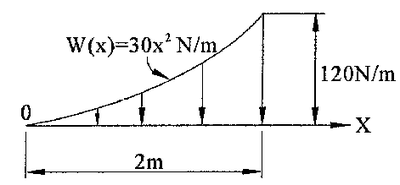 42. 如圖所示之二次曲線分布力量,求合力之大小為多少N?
