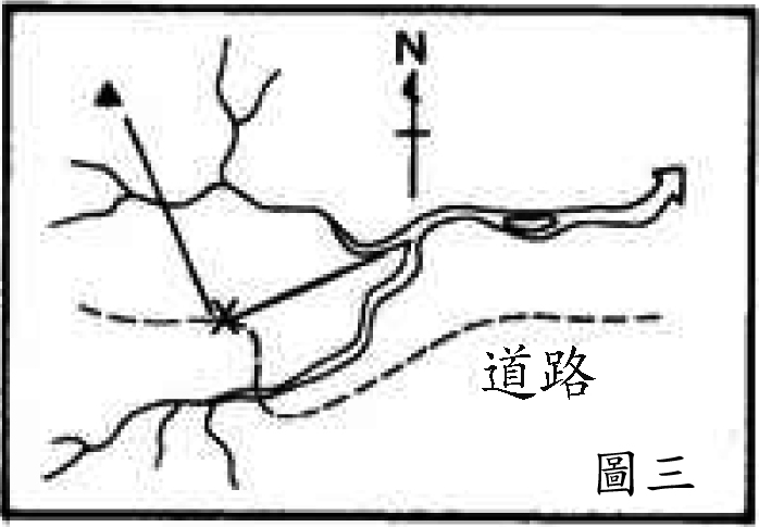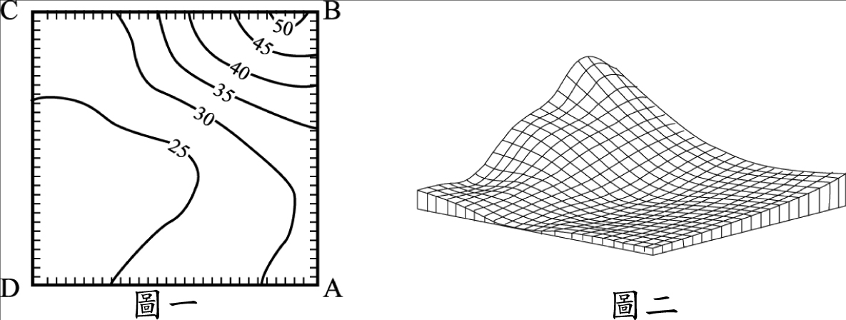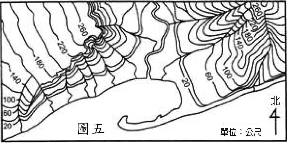 5. 由圖一中哪一點,以30視角俯看,可看到圖二的地形起伏形態?