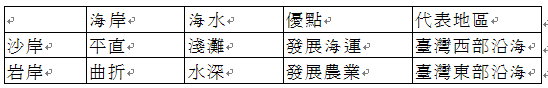 9. 下表有關岩岸、沙岸的比較,正確的有幾項?