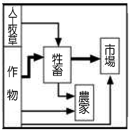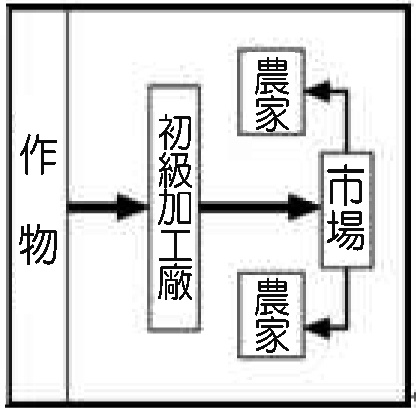 14. 下列A~D為四種市場指向的農業活動圖(圖七)。請問:嘉南、屏東二平原及臺東縱谷的糖業實行企業化經營,尤其是50~60年代蔗糖還居出口商品的首位。哪一種市場指向的農業活動形式最足以顯示臺灣糖業的經營方式?