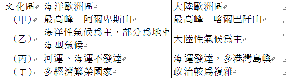 25. 下表為「歐洲兩大化區」的比較,其中「最不符合」地理事實的是哪一項?