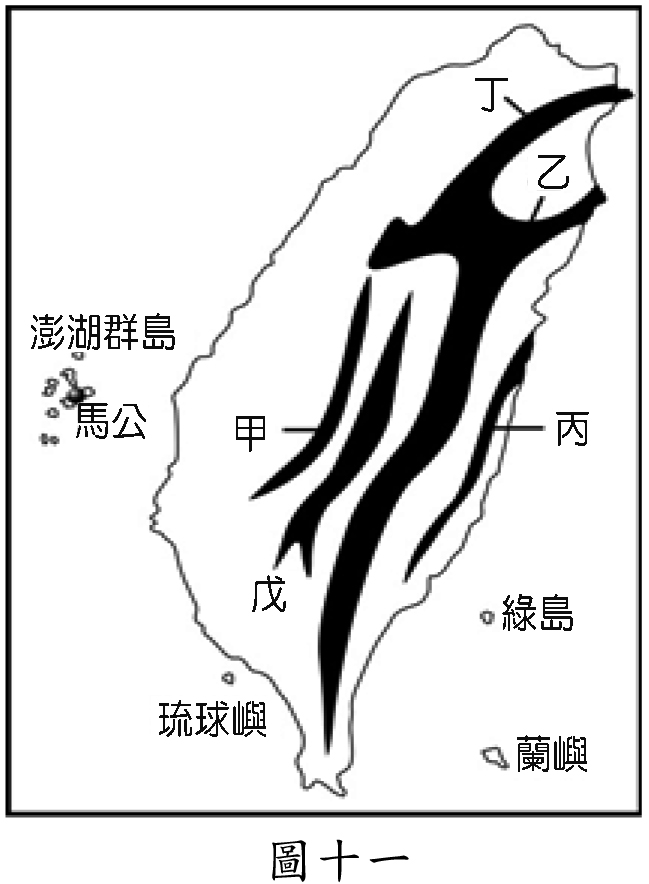 19. 圖十一為臺灣的五大山脈,請問下列敘述何者正確?