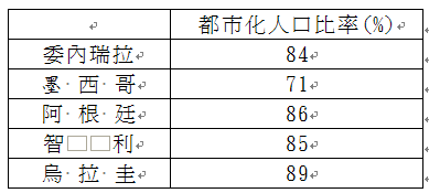 18. 下表是中南美洲都市人口比例,請問由表可看出中南美洲都市具有何種特徵?