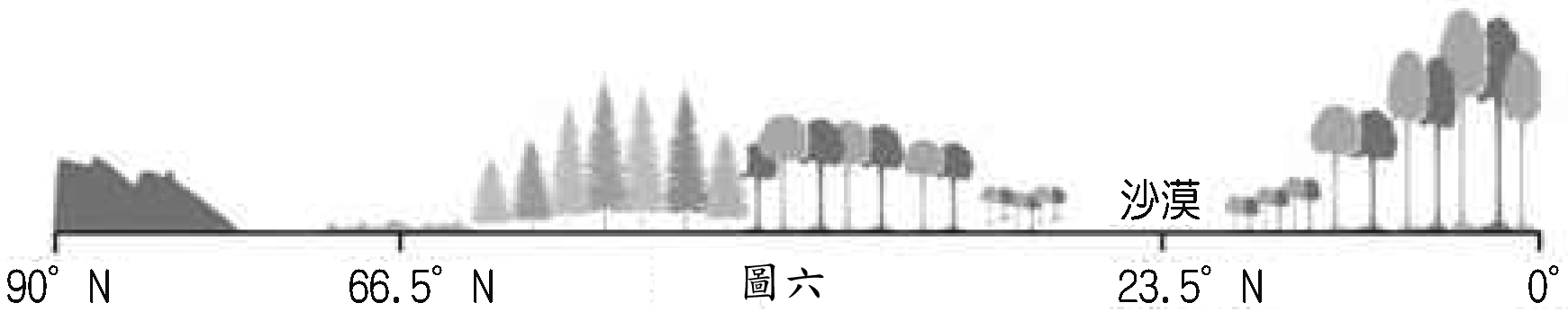 13. 請問由圖六中植被分布的情形可知,全球植物的分布大致與下列哪一因素的變化一致?