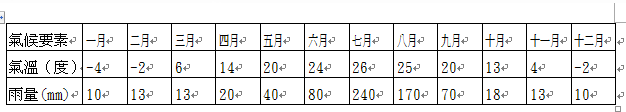 12. 請依下表之氣溫、雨量記錄表判斷此城市屬何種氣候類型?