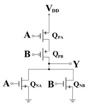44. 如圖所示CMOS數位電路,請問輸出Y為何種邏輯函數?