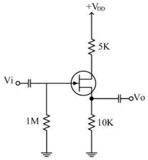41. 如下圖所示FET電路,若汲極靜態電流為0.3mA,試求V