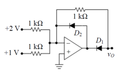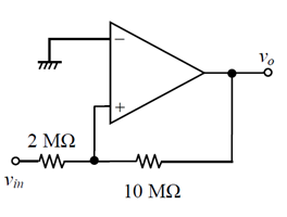 38. 如圖所示為一施密特(Schmitt)觸發器。OP AMP輸出的上下限為±12V。若要使輸出由正轉負時,v
