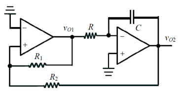 34. 如圖所示由兩個理想OPA構成的波形產生電路,測得v