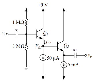 =20kΩ,決定該串級放大電路的總電壓增益大小約為多少?熱電壓V