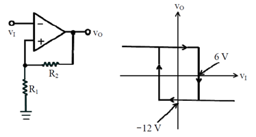 50. 如圖所示為史密特觸發電路及其輸入-輸出轉移特性曲線,其中OPA為理想,若R
