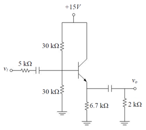 46. 圖示為一種採用集極回授偏壓電路的電晶體共射極放大器,輸出電壓(v