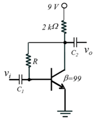 )正半週的最大擺幅恰為5V時,電阻R約為多少?電晶體基-射極的導通定電壓固定為0.8V。