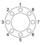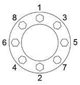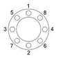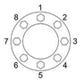 35. 凸緣(Flange)接合是把墊圈夾在兩凸緣面之間,以螺栓鎖緊防止流體滲漏,請問下列螺栓鎖緊順序正確? (108年度考題)